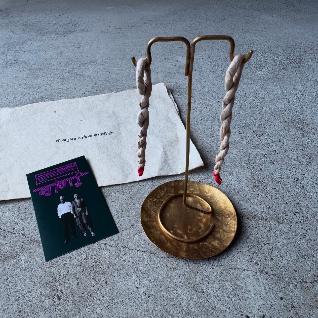 ミタイをさらに楽しむために空間を演出してくれるネパールのロープ香と真鍮のロープ香スタンドです